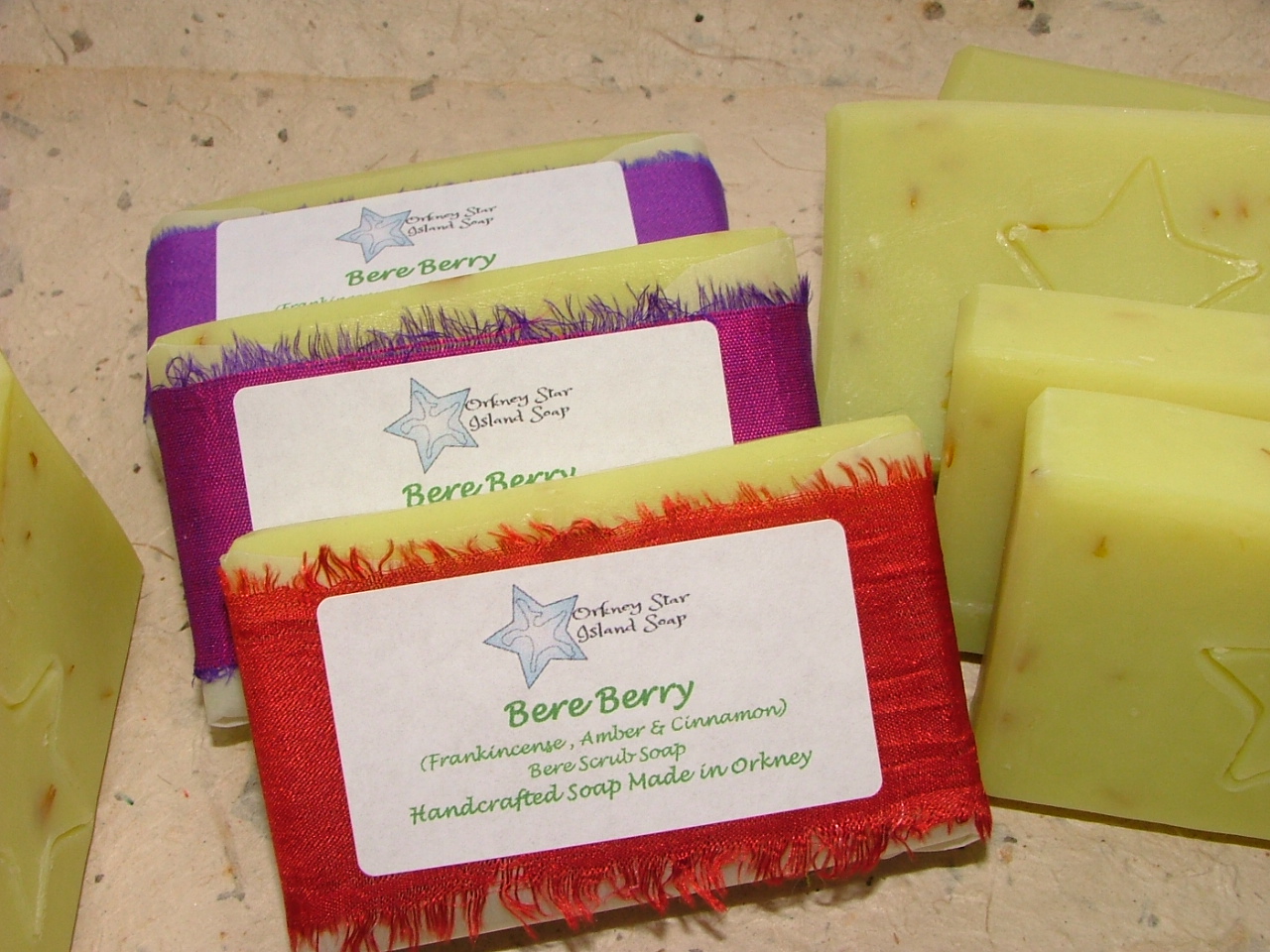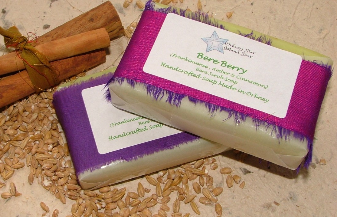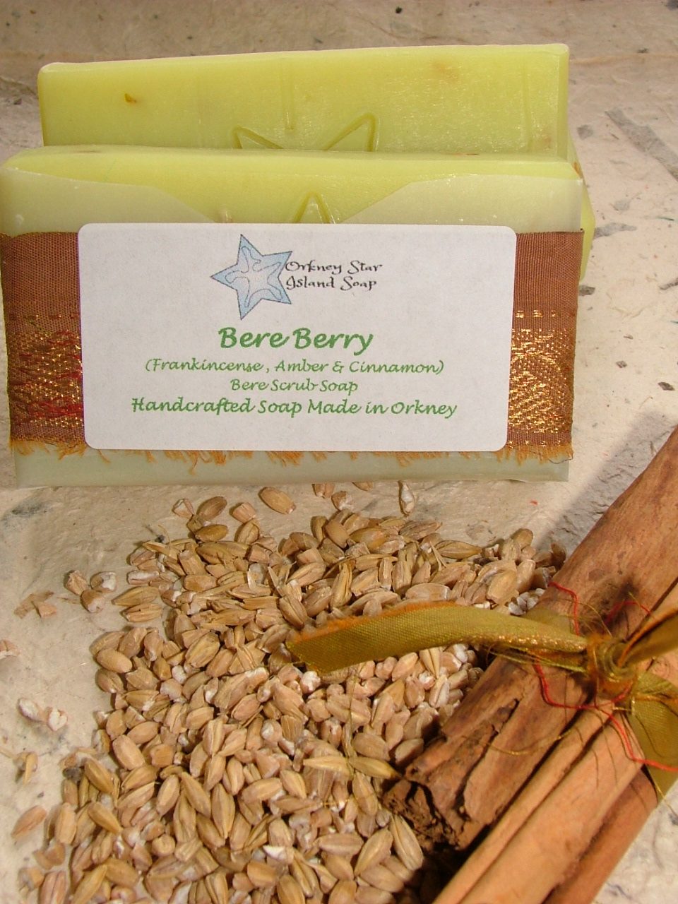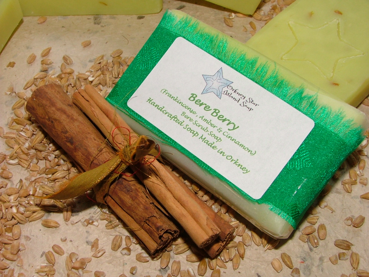 New for Winter, Bere Berry is a pale green soap flecked with bere husks. It has a warming fragrance of frankincense, cinnamon and a dash of amber.