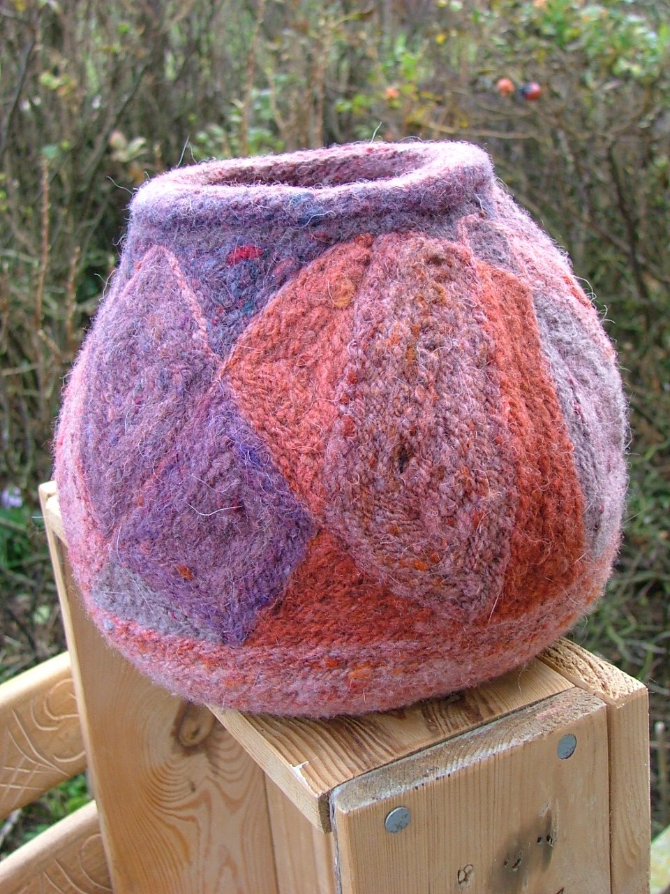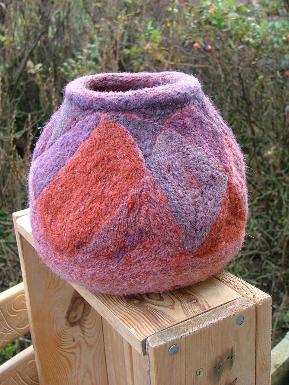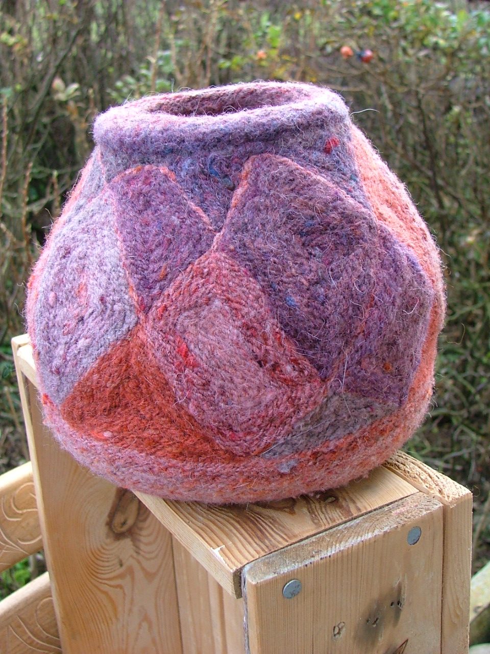 The yarn has been hand-dyed and needle-felted on to the bowl to form the design.